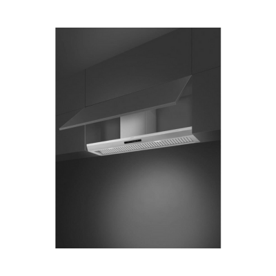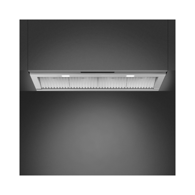 Fully integrated extractor hood with elegant stainless steel design and 120 cm width. Perfect for large kitchens, it delivers powerful extraction with quiet operation for a clean and sophisticated atmosphere.