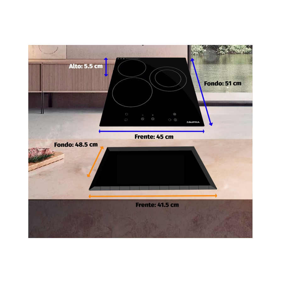 45 cm 3-Burner Electric Vitroceramic Cooktop 220V – Supra – VITRO3 – El Tío Sam Puerto Vallarta