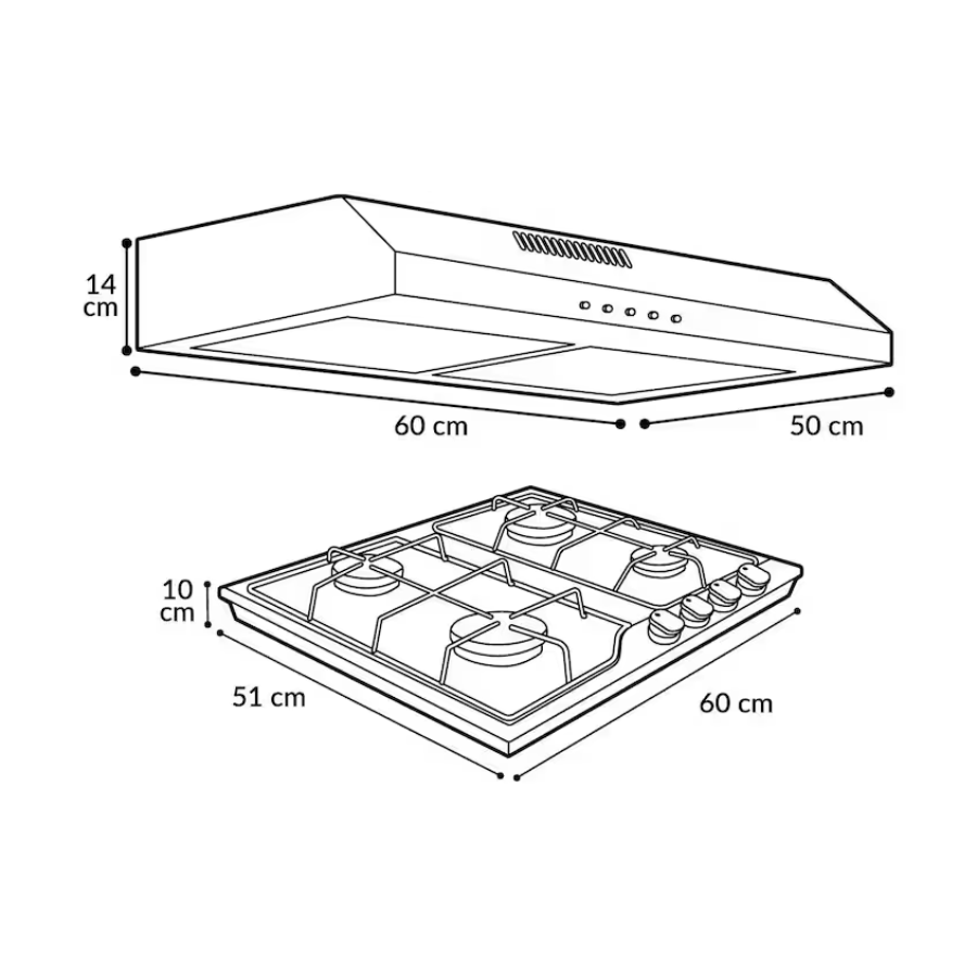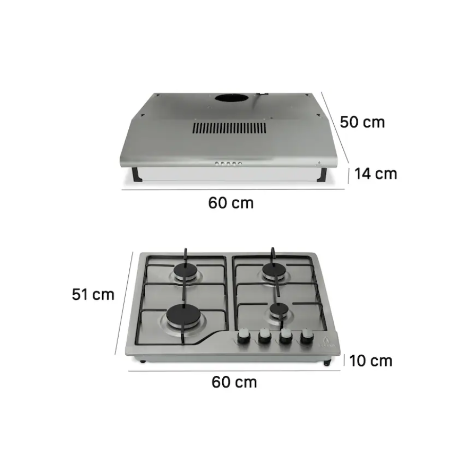 60 cm Built-In Wall Range Hood + 4-Burner Gas Cooktop Combo – Supra – NOVA DIBASE – El Tío Sam Puerto Vallarta