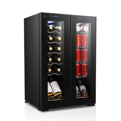 ¡Dos en uno! Esta cava con enfriador tiene doble zona de enfriamiento para mantener tus bebidas favoritas a la temperatura ideal. Utlizalo como refrigerador o frigobar para tus cervezas, refrescos y la parte de cavas es ideal para tus vinos.