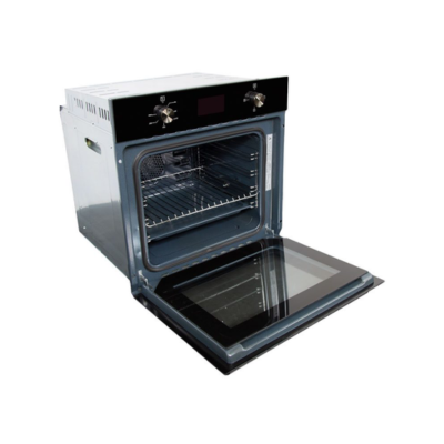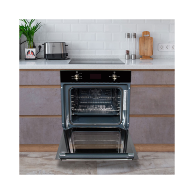 This 110V 60 cm electric oven with a black glass finish is designed to bring both functionality and style to the kitchen. Its modern design integrates seamlessly into contemporary spaces, while the spacious interior and even cooking system allow efficient preparation of a wide variety of dishes. The tempered black glass provides an elegant finish and easy cleaning.