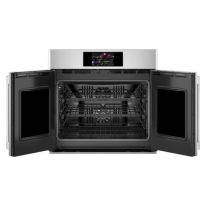 Statement Collection’s 30″ single French door professional electric single wall oven with French door features 5 cubic feet of capacity with dual fan, true European convection with direct air. The wall oven also features a 7″ LCD display control, WiFi connectivity and ten-pass bake. element. Available at AppliancesConnection