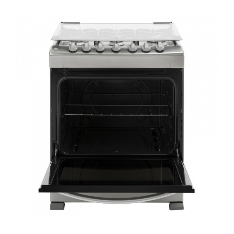 The stove has a stainless steel cover and tempered glass hood with mirrored panoramic window; the design has 3 wire rod grills with 6 burners (4 standard and 2 jumbo) a porcelain comal, electronic button ignition, lp gas operation convertible to natural gas and oven capacity 5.1 cubic feet.
