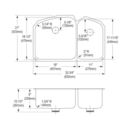 Kitchen sink stainless steel double Elkay – ELUH31229RPD – El Tio Sam Puerto Vallarta