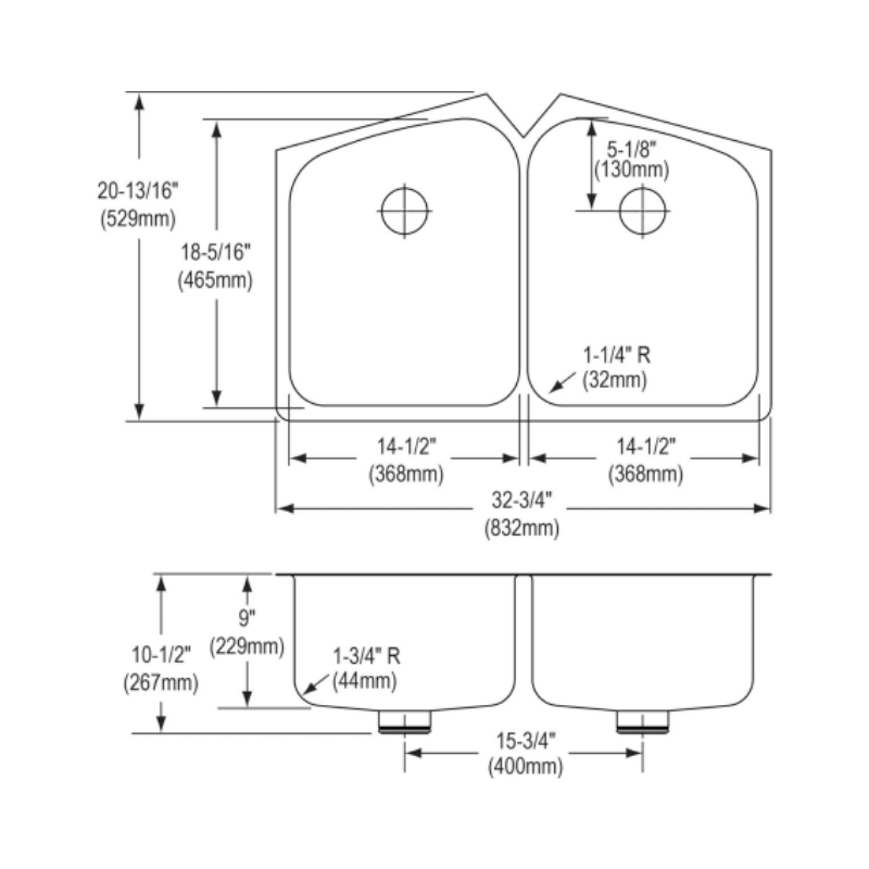 Kitchen sink stainless steel double Elkay – ELUH32229PD – El Tio Sam Puerto Vallarta