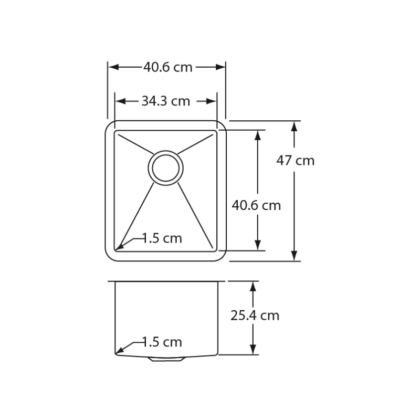 - Dimensions tub(s): 34.3 x 40.6 x 25.4 cm