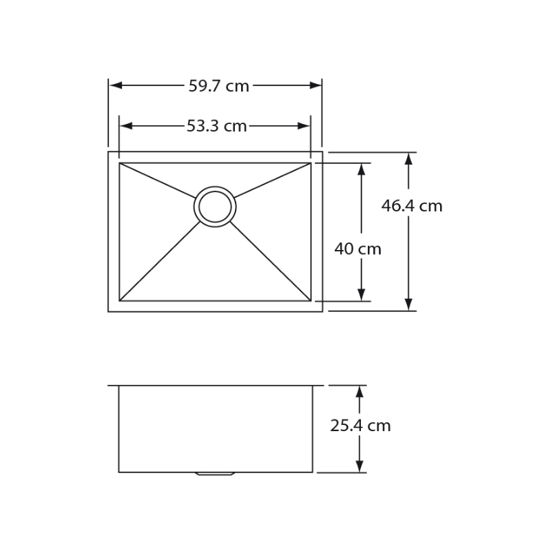 - Dimensions tub(s): 53.3 x 40 x 25.4 cm (17.5 x 16 x 16.5 in.)