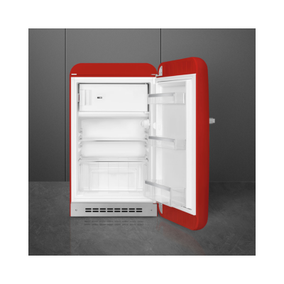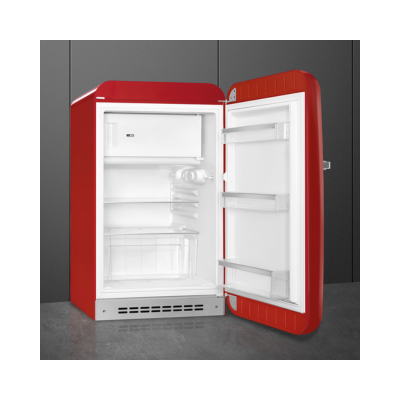 This 4 cu.ft retro red mini fridge by Smeg blends iconic 1950s design with reliable modern performance. Perfect for small spaces like offices, bedrooms, or lounges, it delivers both vibrant style and efficient cooling in a compact form.