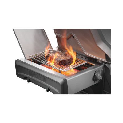 El asador Napoleon Rogue de 6 quemadores con quemador lateral infrarrojo en acero inoxidable representa la máxima potencia y elegancia dentro de la línea Rogue. Diseñado para los amantes de la cocina al aire libre que buscan un equipo de alto rendimiento y durabilidad, este modelo combina tecnología avanzada, materiales premium y gran capacidad de cocción. Su quemador lateral infrarrojo SIZZLE ZONE™ permite sellar carnes a altas temperaturas, mientras los seis quemadores principales ofrecen calor uniforme para una cocción precisa.