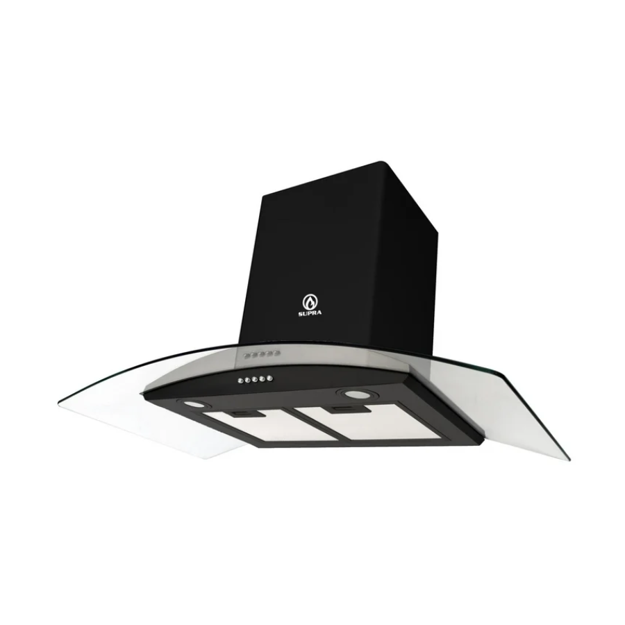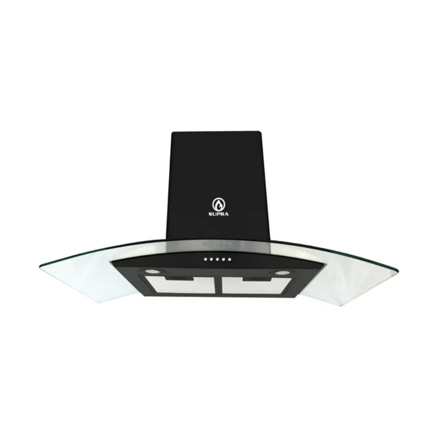 Esta campana de pared Supra de 90 cm está diseñada para brindar una ventilación eficiente y complementar el estilo de cualquier cocina moderna. Su cristal curvo en color negro aporta una apariencia elegante y contemporánea que se integra perfectamente en el espacio. Su sistema de extracción ayuda a eliminar humo, vapor y olores durante la cocción, manteniendo el ambiente limpio y confortable. Su diseño permite un uso práctico y cómodo todos los días. Es una excelente opción para quienes buscan funcionalidad y un toque sofisticado en su cocina.