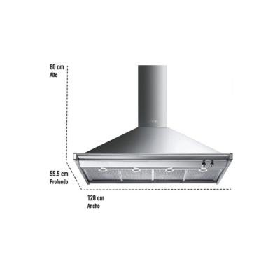 Etiquetas: 120 cm, Acero Inoxidable, Campana extractora, CAMPANA PARED, El Tio Sam Puerto Vallarta, Extractor cocina, Filtros Lavables, Iluminación LED, Smeg