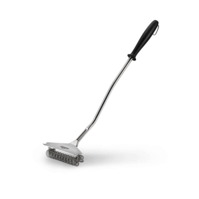 El cepillo ancho sin cerdas de Napoleon ofrece una alternativa moderna y segura para la limpieza de tu parrilla. En lugar de cerdas tradicionales, cuenta con un diseño de espiral de acero inoxidable que elimina residuos de comida y grasa sin riesgo de que se desprendan cerdas. Su cabezal ancho cubre mayor superficie para una limpieza rápida y eficiente, mientras que el mango ergonómico proporciona un agarre firme y cómodo durante el uso.