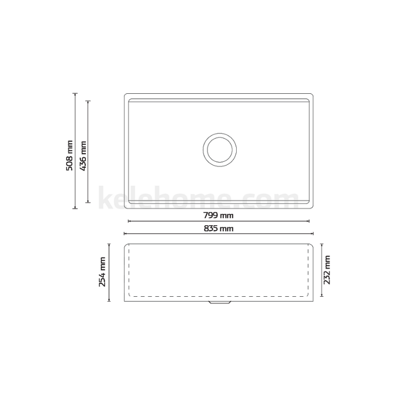 Tarja 1 canasta de cerámica con faldon Kele – KCS3320A – Kitchen Sink – El Tio Sam Puerto Vallarta